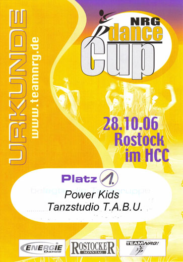 Sie kamen, tanzten und siegten. Man, was war das für eine Aufregung. Der aller erste Wettkampf für unsere Power Kids. Nach einer schlaflosen Nacht (wie uns die Eltern berichteten) und einer fast 6-stündigen Busfahrt ging es dann um 16.16 Uhr los. Und unsere jüngsten Tänzer zeigten (tanzten) was sie konnten – Ergebnis: 1. Sieger im Kids Cup!! Übrigens, es waren insgesamt 14 Tanzgruppen bei den Kiddis vertreten. Also, Hut ab und herzlichen Glückwunsch den Power Kids und natürlich auch an unsere/ihre Trainerin und Choreographin Sandy Seeligmüller.